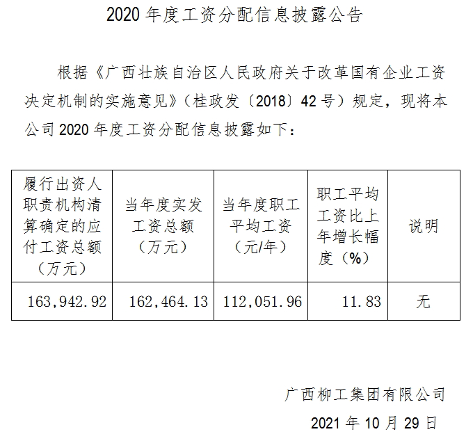 2020年度工資分配信息披露公告